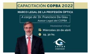 El Colegio de Ópticos organiza una capacitación para sus matriculados, enfocada en el Marco legal de la profesión en el territorio bonaerense, que estará a cargo de Francisco Da Giau, asesor legal de la entidad profesional.