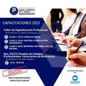 El Colegio de Profesionales de la Higiene y Seguridad en el Trabajo (CPHS) anunció su calendario de formaciones exclusivas para comenzar el 2025 con herramientas actualizadas y esenciales para el desarrollo profesional de sus matriculados. Estas capacitaciones, dictadas por expertos en la materia, buscan fortalecer las competencias técnicas y digitales de los profesionales del sector.